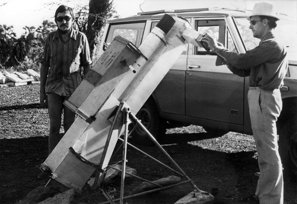 L'avant des instruments repose sur deux roulements à billes se déplaçant sur une tige en acier galbée de sorte que le mouvement de l'ensemble épouse la trajectoire du Soleil le jour de l'éclipse. La prise de vues, à l'aide de cette installation sophistiquée, a permis de réaliser 50% du programme initialement prévu.